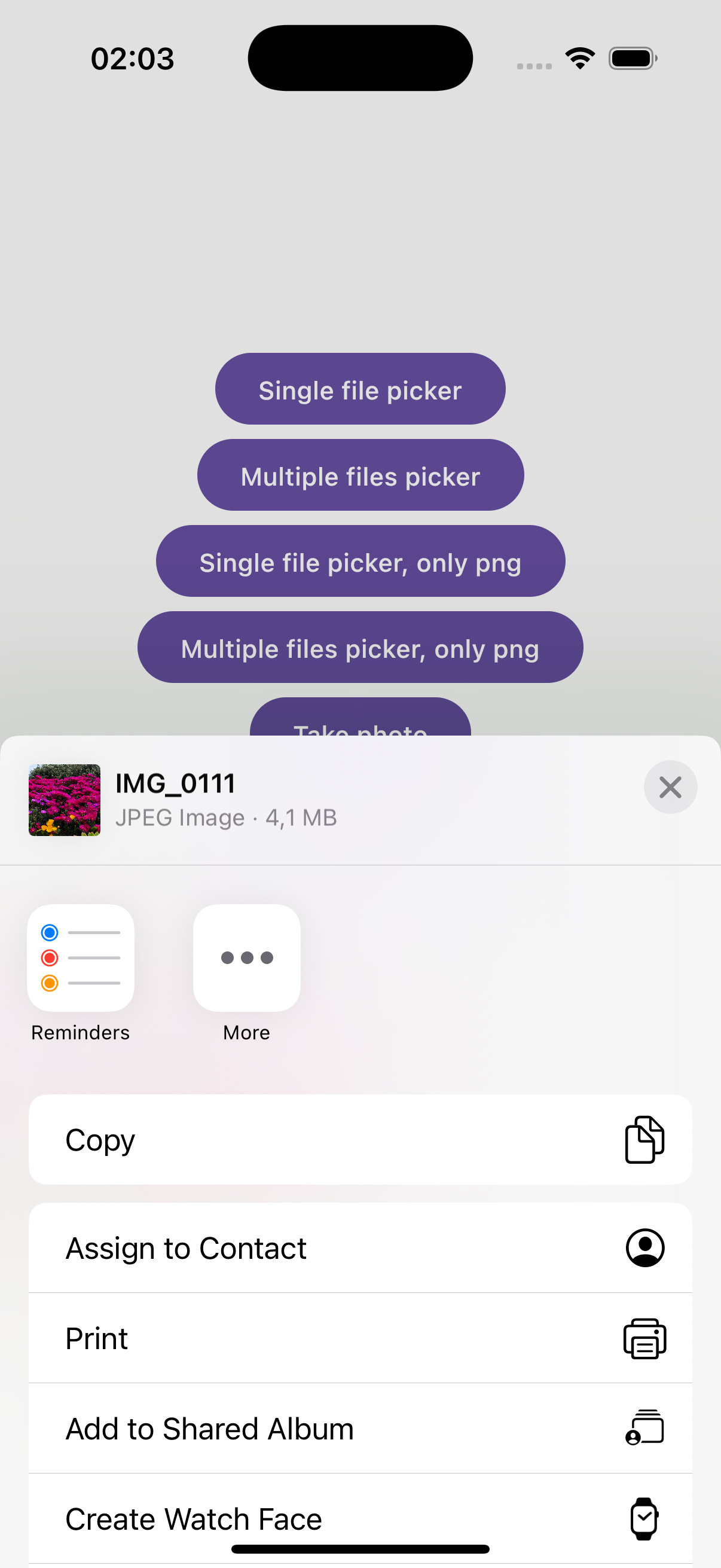 The share file component provides a native interface for users to share files using their device’s sharing options.Ensure the file you are sharing exists and is accessible. Sharing a non-existent file will result in an error.